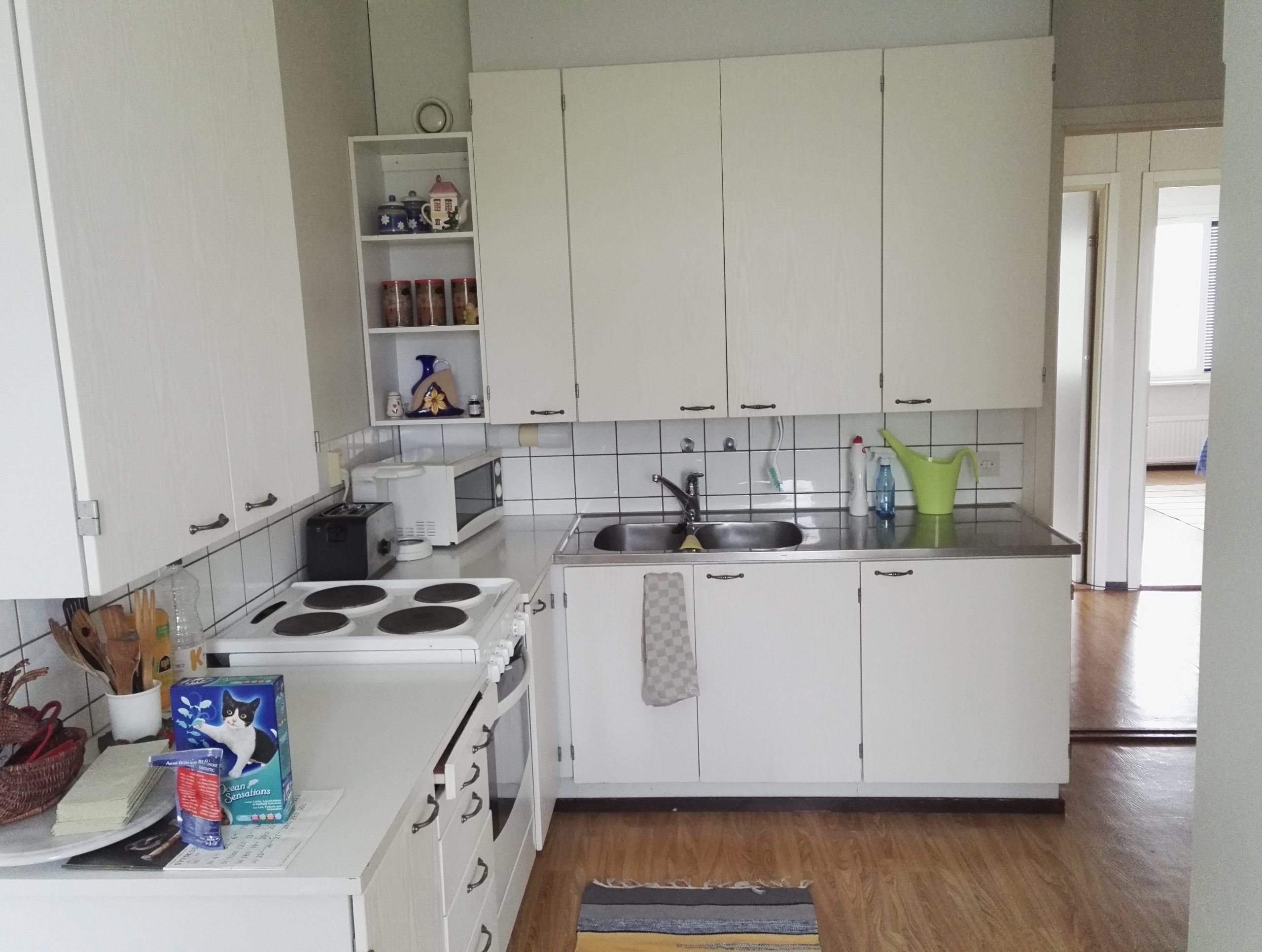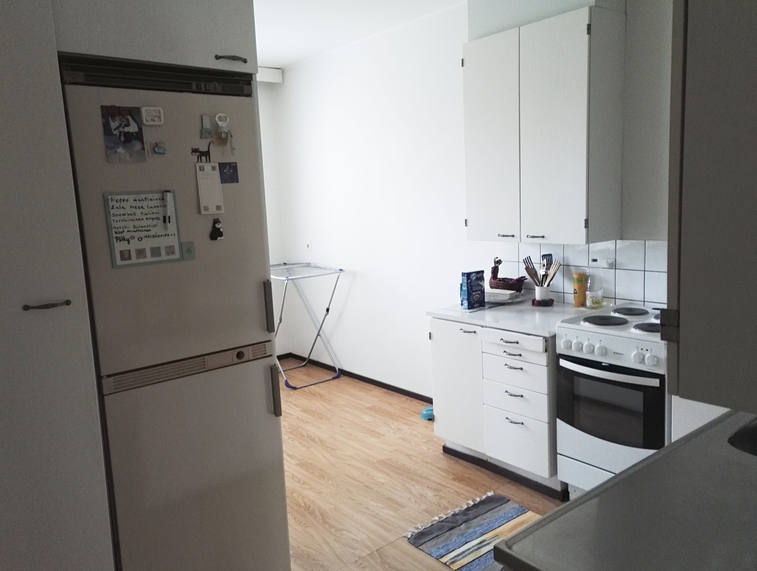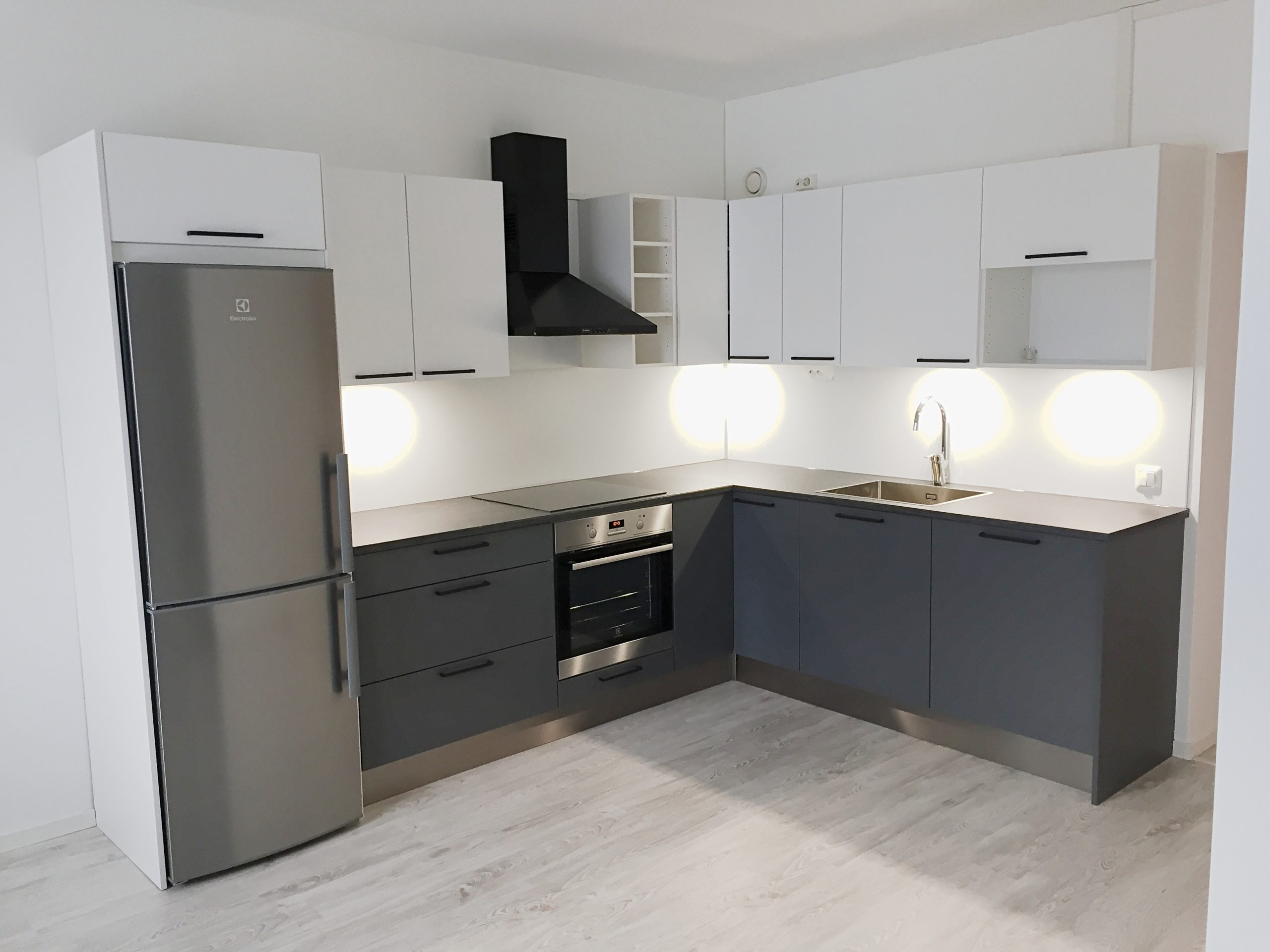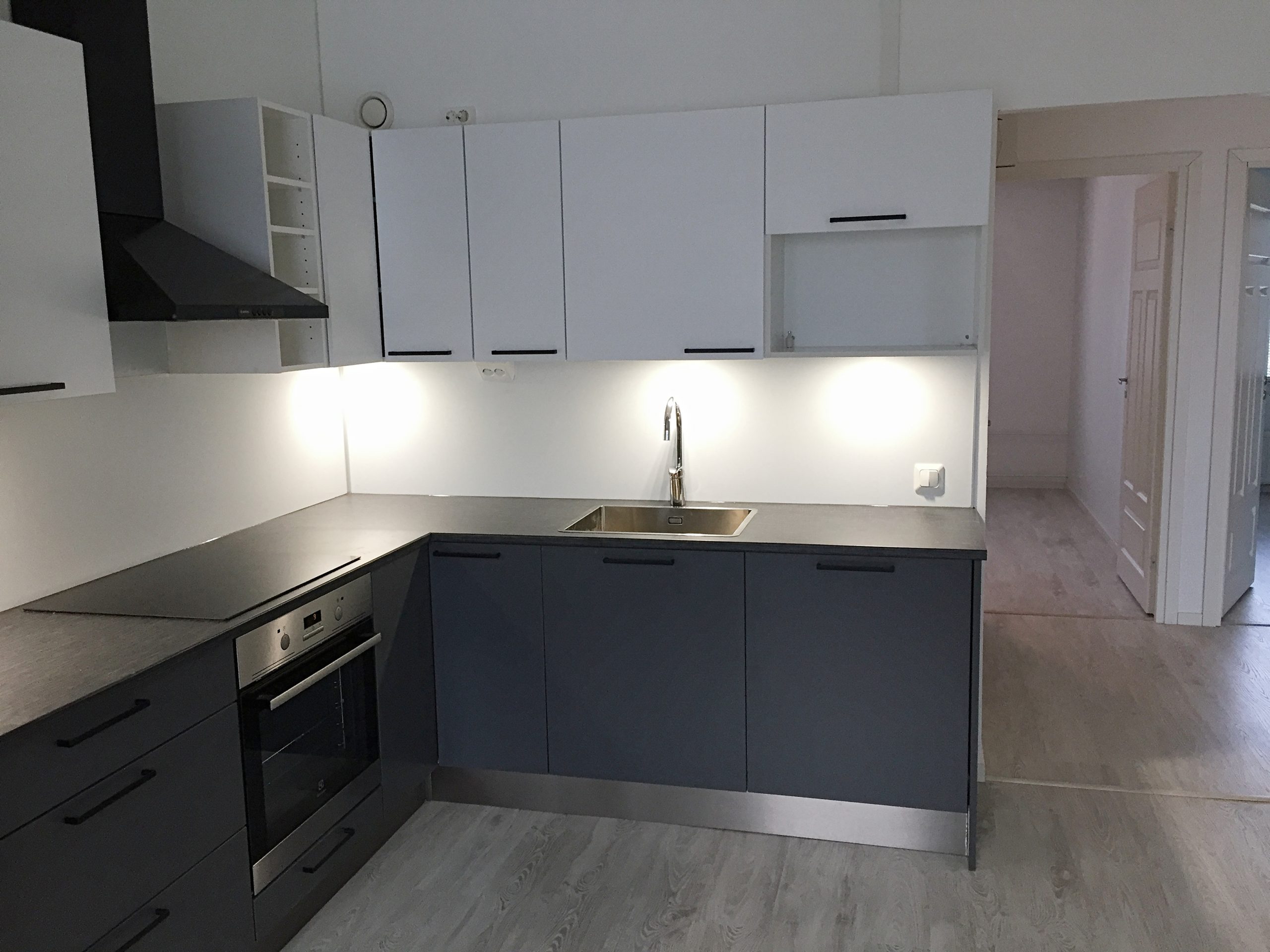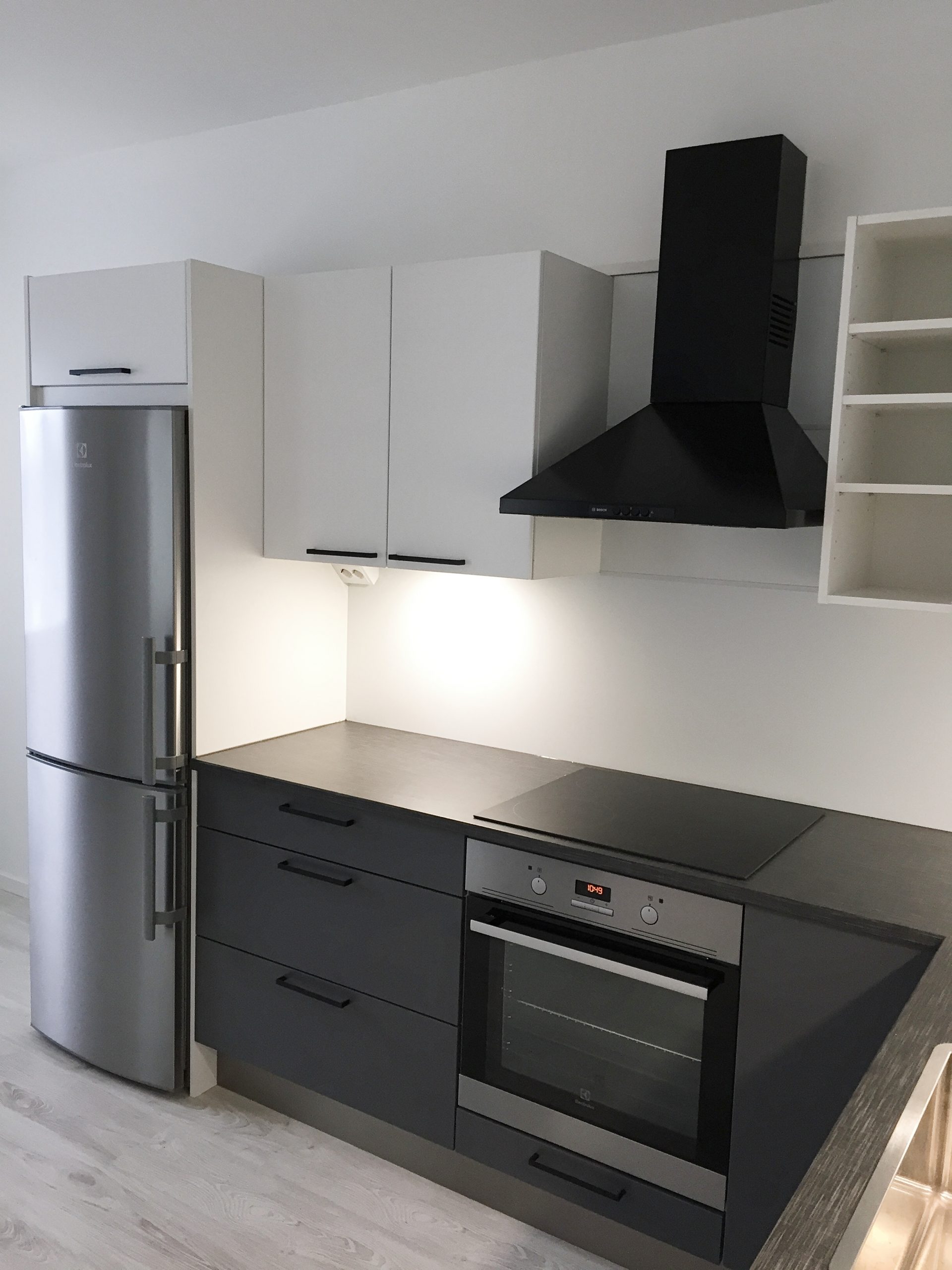 Tähän sijoitusasuntoon tehtiin pieni facelift omistajan vaihtuessa. Vanha keittiö koki todellisen muutoksen ja samalla myös asunnon säilytystilaa lisättiin uusilla liukuovikaapistoilla.