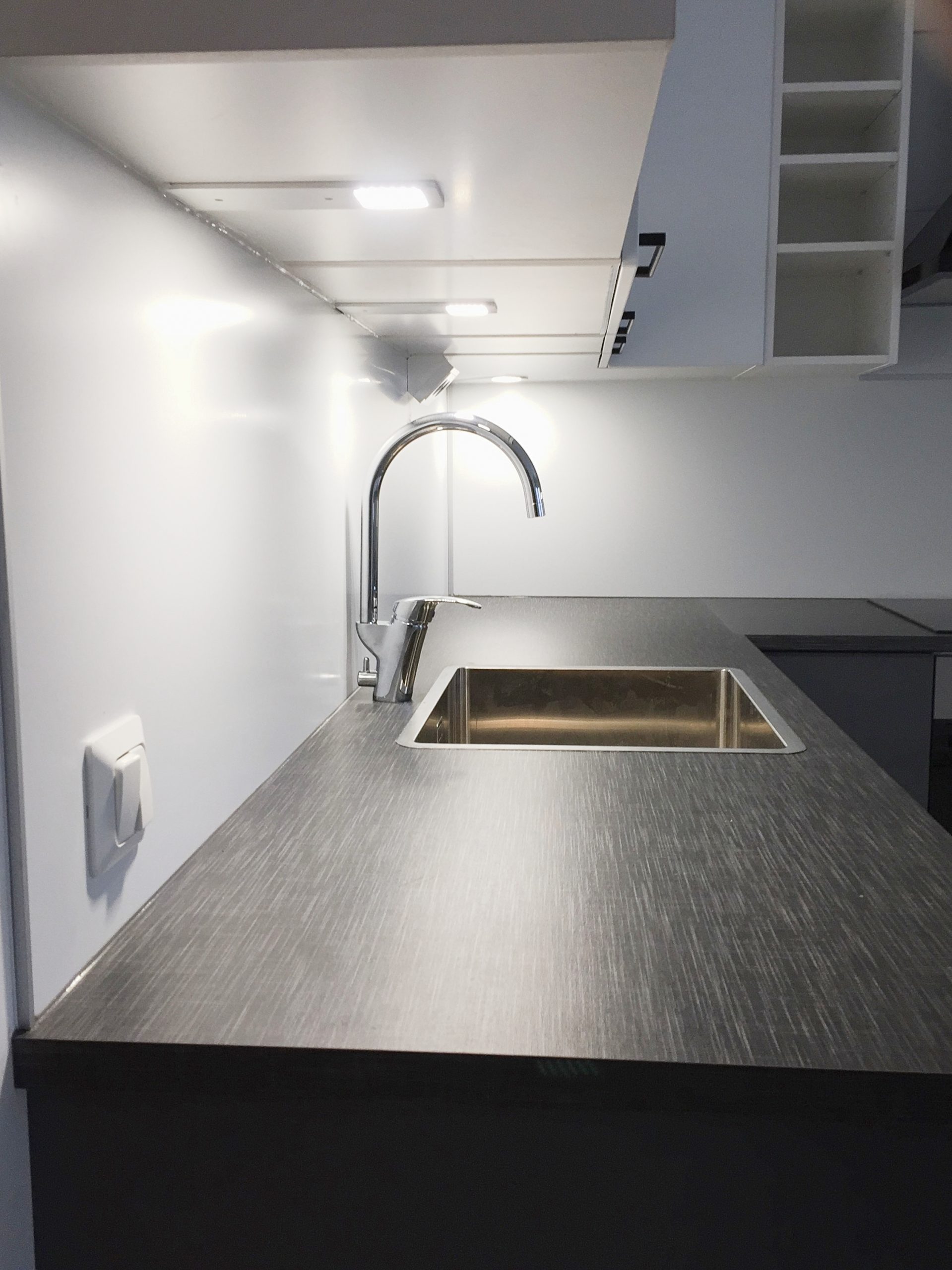 Välitilavalaistus: Yläkaappien pohjiin integroidut led-spotit