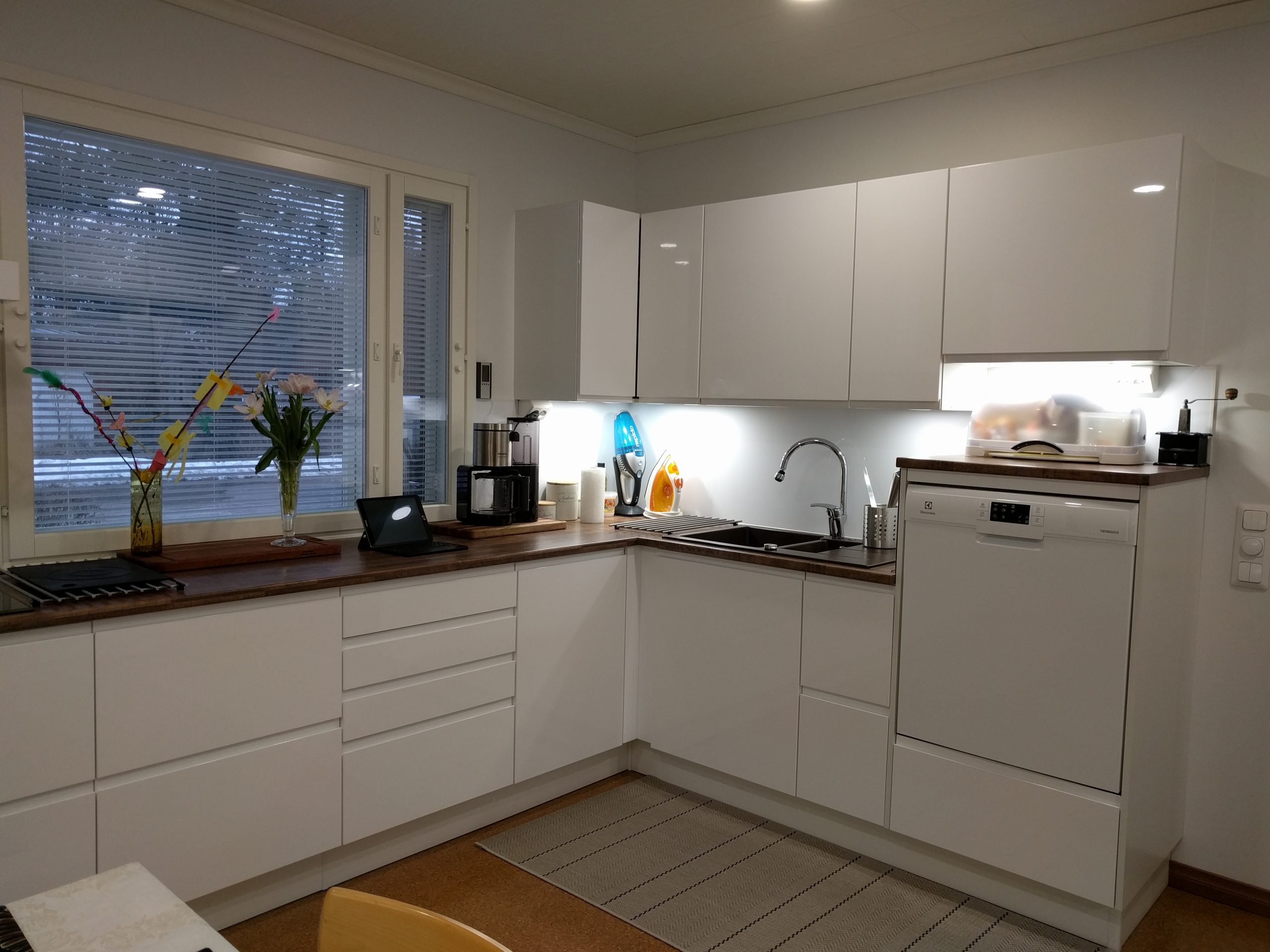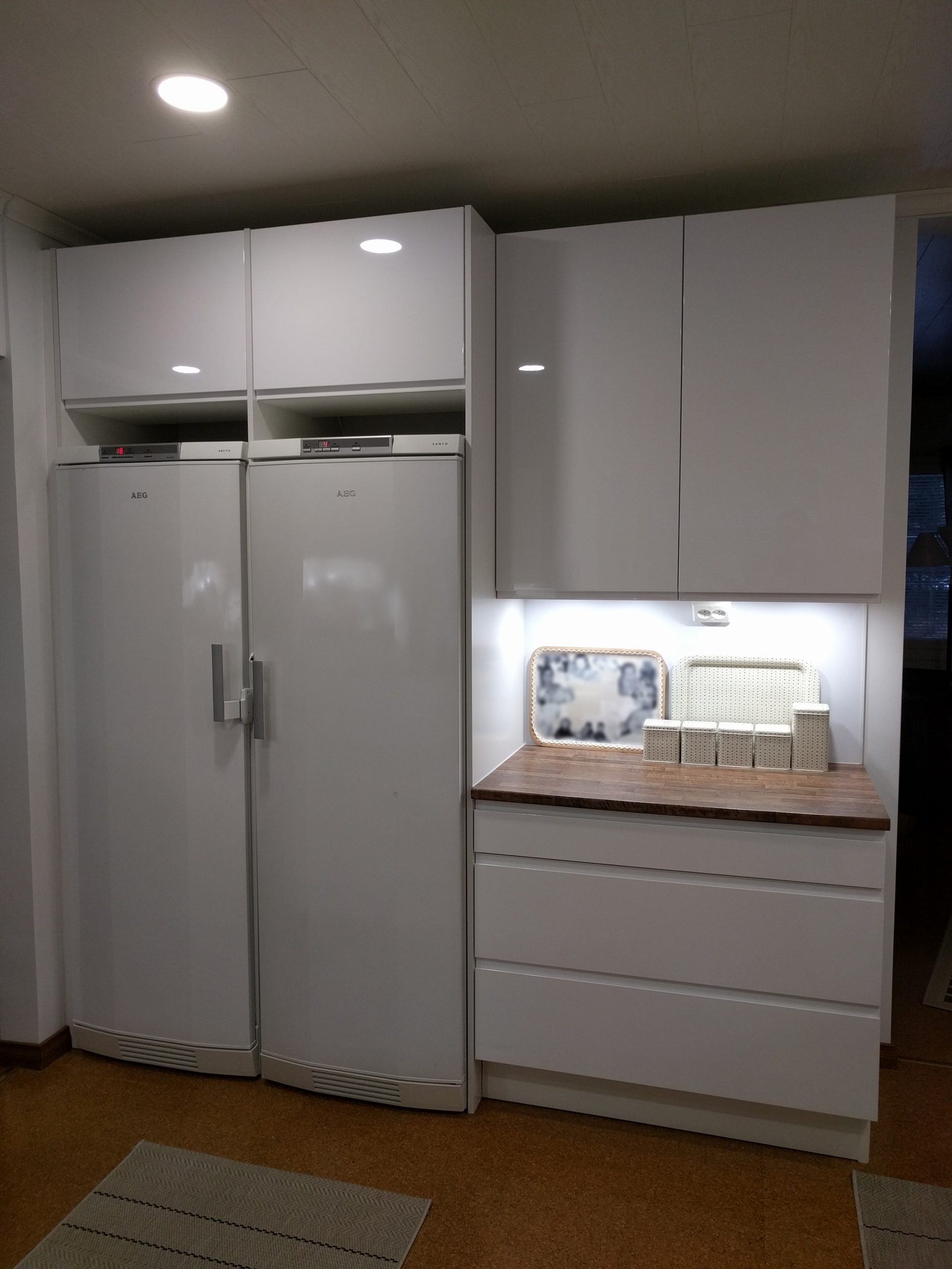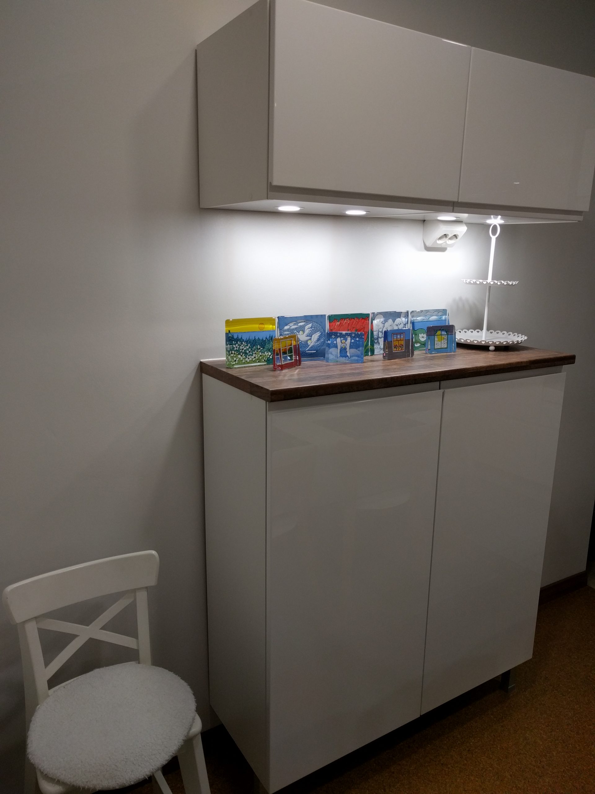 Välitilavalaistus: Yläkaappien pohjiin integroidut led-spotit