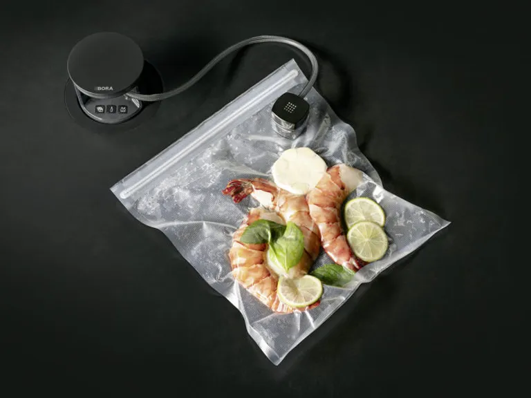 Bora QVac on työtasoon integroitava näppänkokoinen, erittäin tehokas vakumointi- eli tyhjiöpakkauslaite, joka parantaa elintarvikkeiden säilyvyyttä jopa kolme kertaa pidemmäksi ja vähentää ruokahävikkiä. QVacilla onnistuu myös supernopea marinointi 5-10 minuutissa.